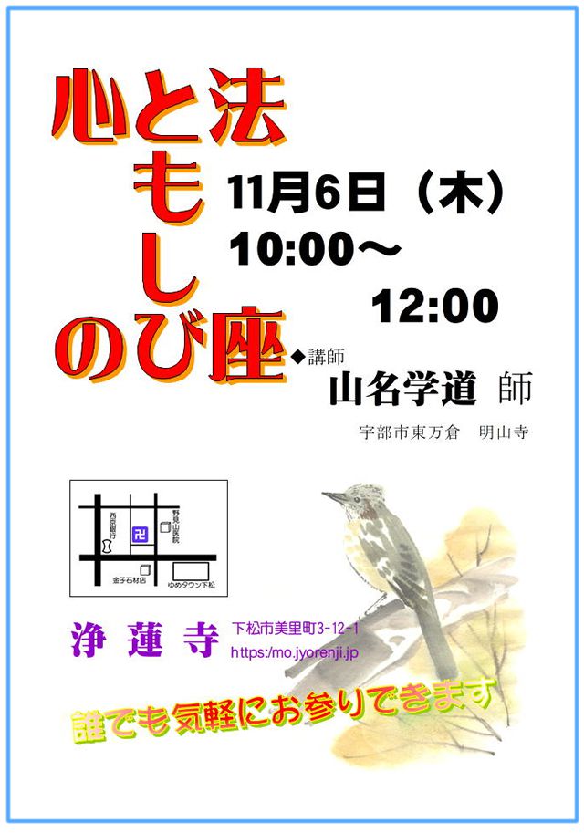 11月心のともしび法座 10月・11月の会議 10月29日(水)運営委員会 13:30〜11月19日(水)運営委員会 13:30〜 令和7年(2025)法座・行事日程 令和7年(2025)法座日程 令和7年(2025)事業・行事日程